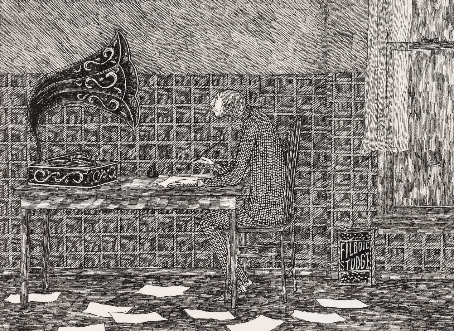 For further Gorey reading, my friend Todd Krieger turned me onto this great read: What's Gorey's Story?